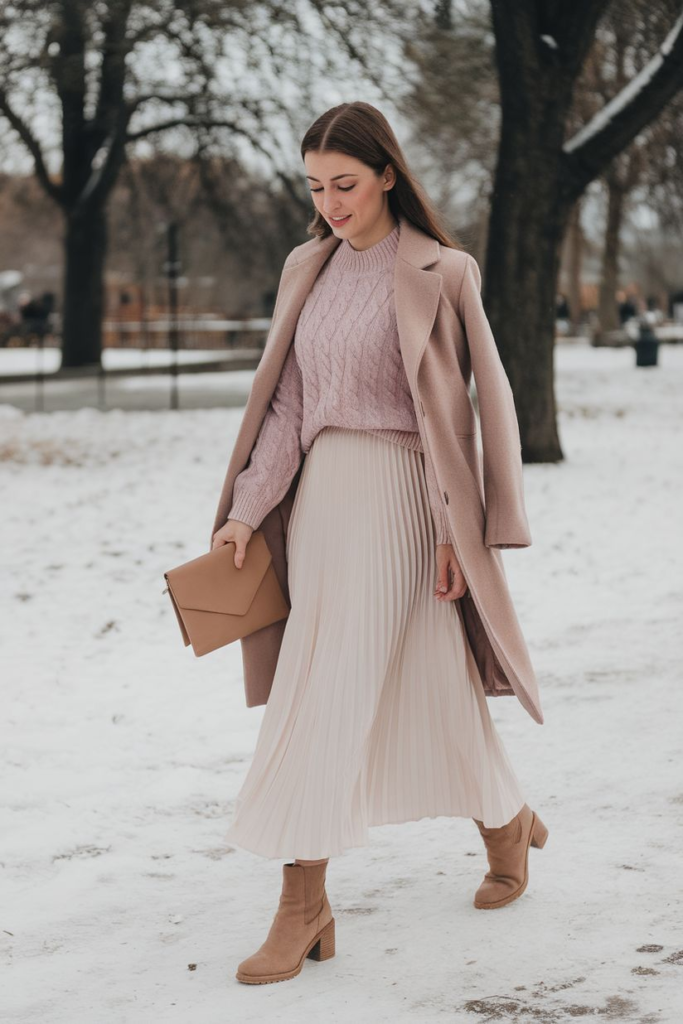 Corporate life in AC-chilled offices is brutal. My game-changer: A responsibly sourced down puffer from an ethical label (goose down from audited farms, ₹4,500 investment that pays off yearly). Underneath, a turtleneck from hemp fabric (super warm, wrinkle-free), wide-leg wool trousers thrifted and tailored, and shearling-lined clogs from a local artisan. Flashback: Pre-sustainable me bought cheap synthetics that shed microplastics everywhere—guilt city. Now, this ensemble packs light for travel (one bag for a week-long trip) and looks polished. Add drop earrings from recycled silver, and it’s date-night ready. Hubby says it makes me look “boss babe cozy.” Heat-trapping without the ethical freeze.