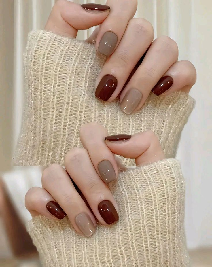 Brown, mocha, olive green, taupe, and clay shades are trending everywhere. I tried brown nails for the first time and was surprised by how elegant they looked. Earthy tones feel warm, mature, and sophisticated. They suit almost all skin tones and outfits.